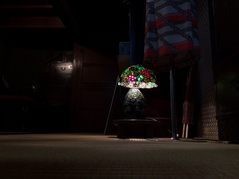 光と影と色とそこにあるモノたちを最大限に活かした、完成度のとても高い「写真作品」です。大人をゆうに超える秀逸さがあります。水平と垂直の基本はもちろん、中心となるステンドグラスの照明をあえてほんの少し中心からずらし、左奥には棚の取っ手をぽつんと浮かび上がらせることで奥行き感を構成しながら、その暗い余白のなかに、床に落ちる光と影のさまざまな濃淡や形、漏れ出る光によってかすかに存在を認められるモノたちを取り込む視点。ただ単に美しいというだけではない、ここに確かにある、人の静かな息遣いや温度感がしっとりと醸し出されています。